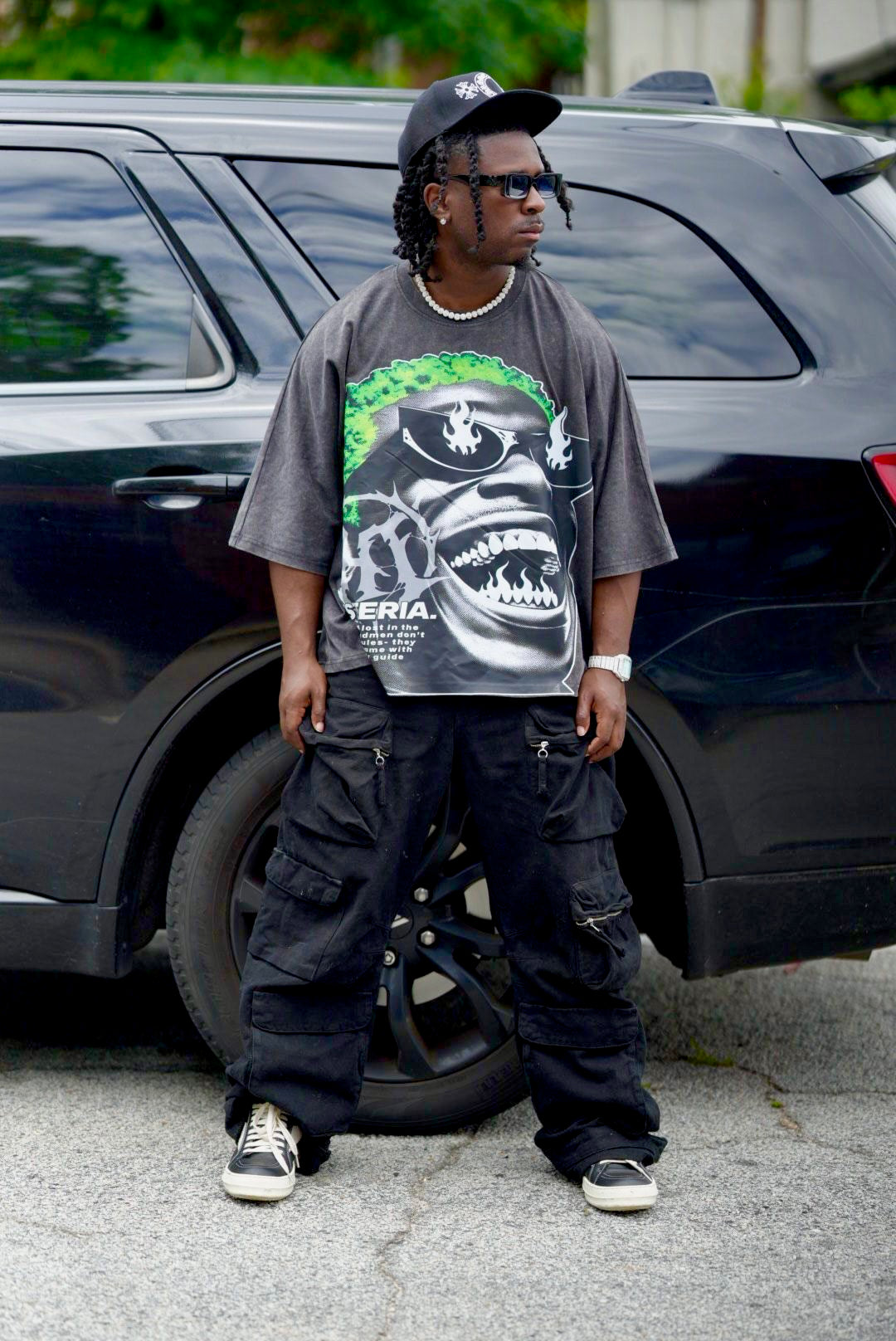 Hollywood Friends Stonewashed Black Denim Carpenter Shorts