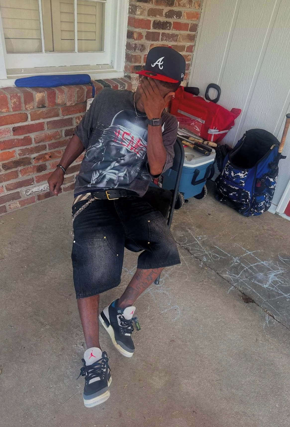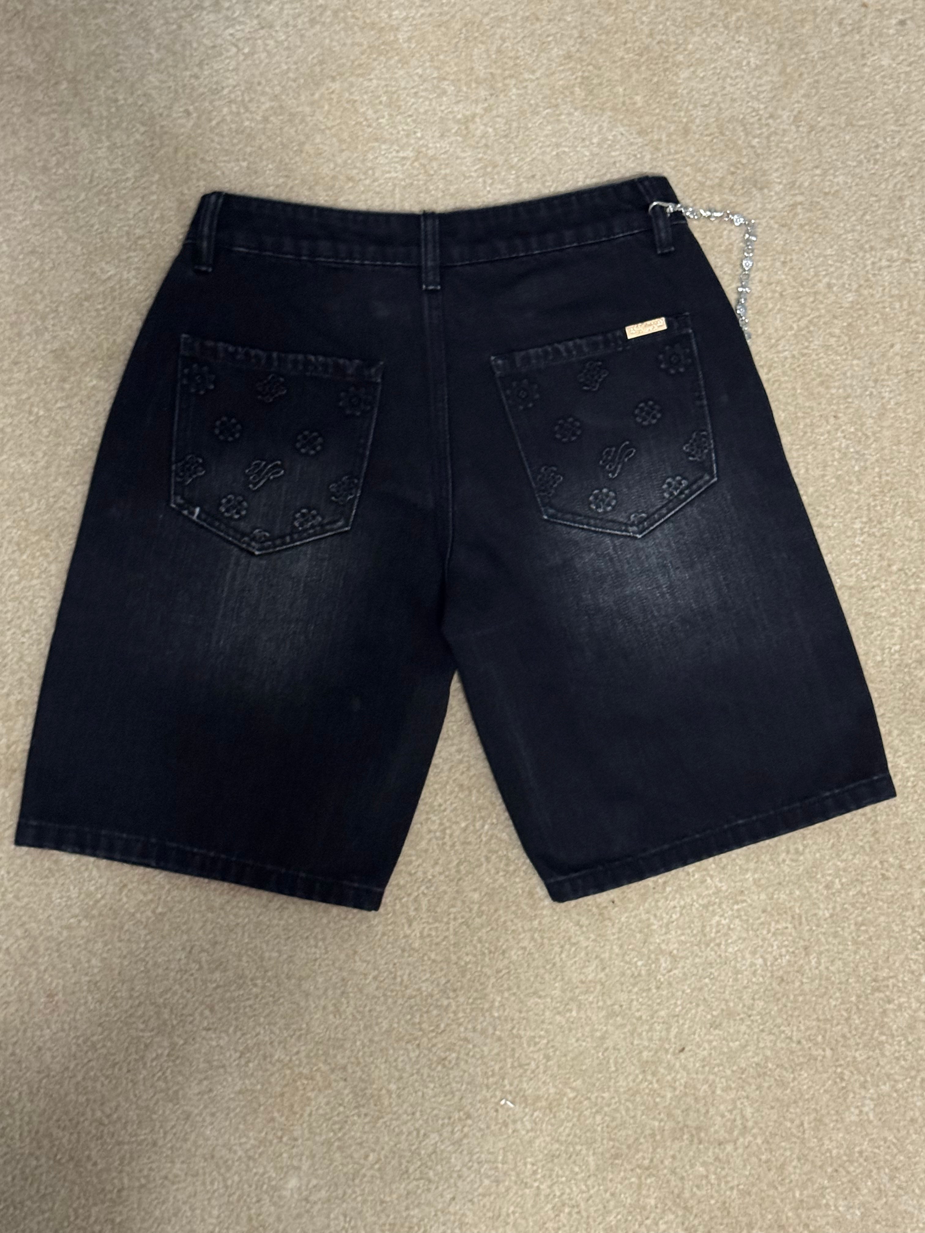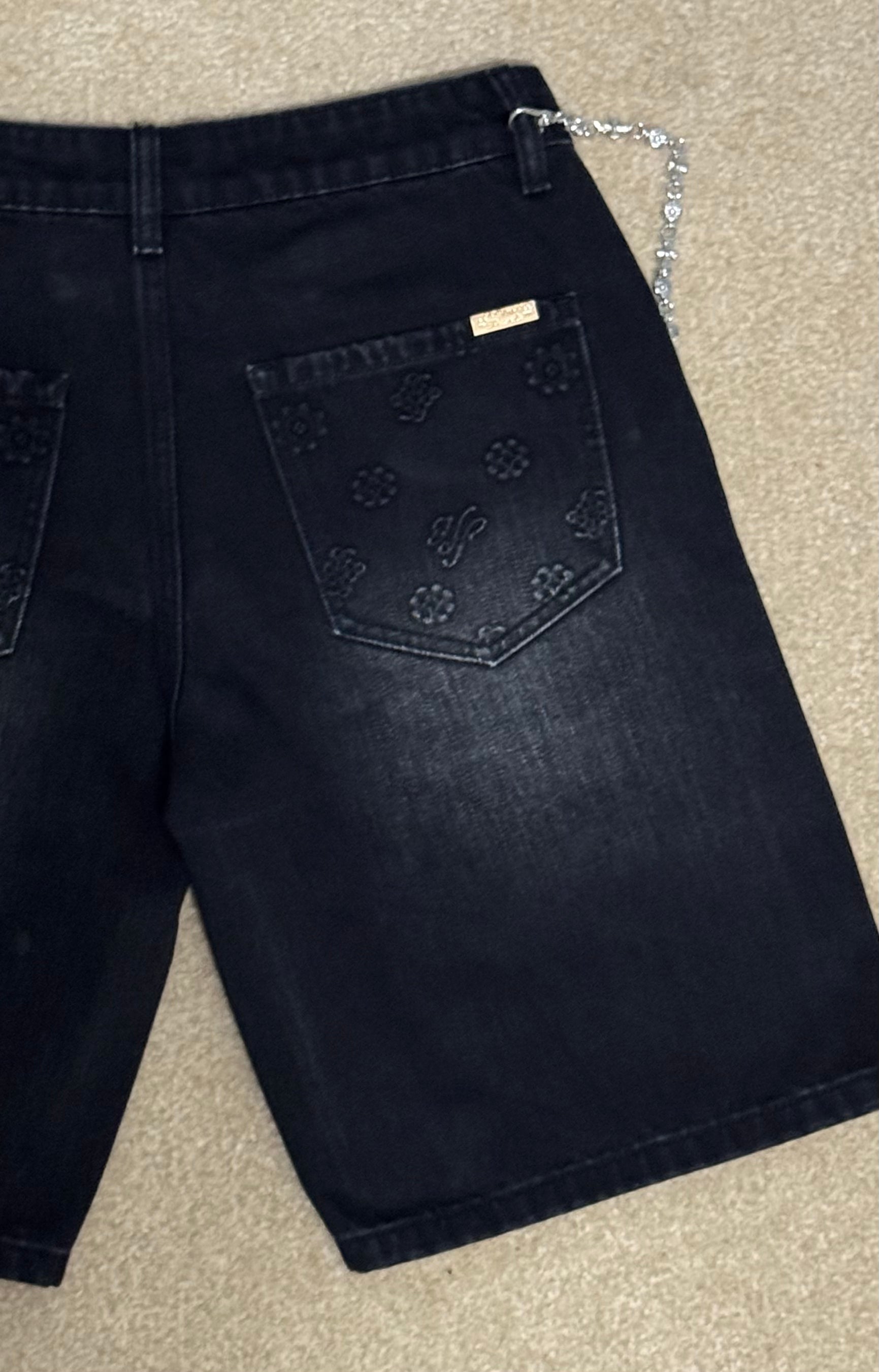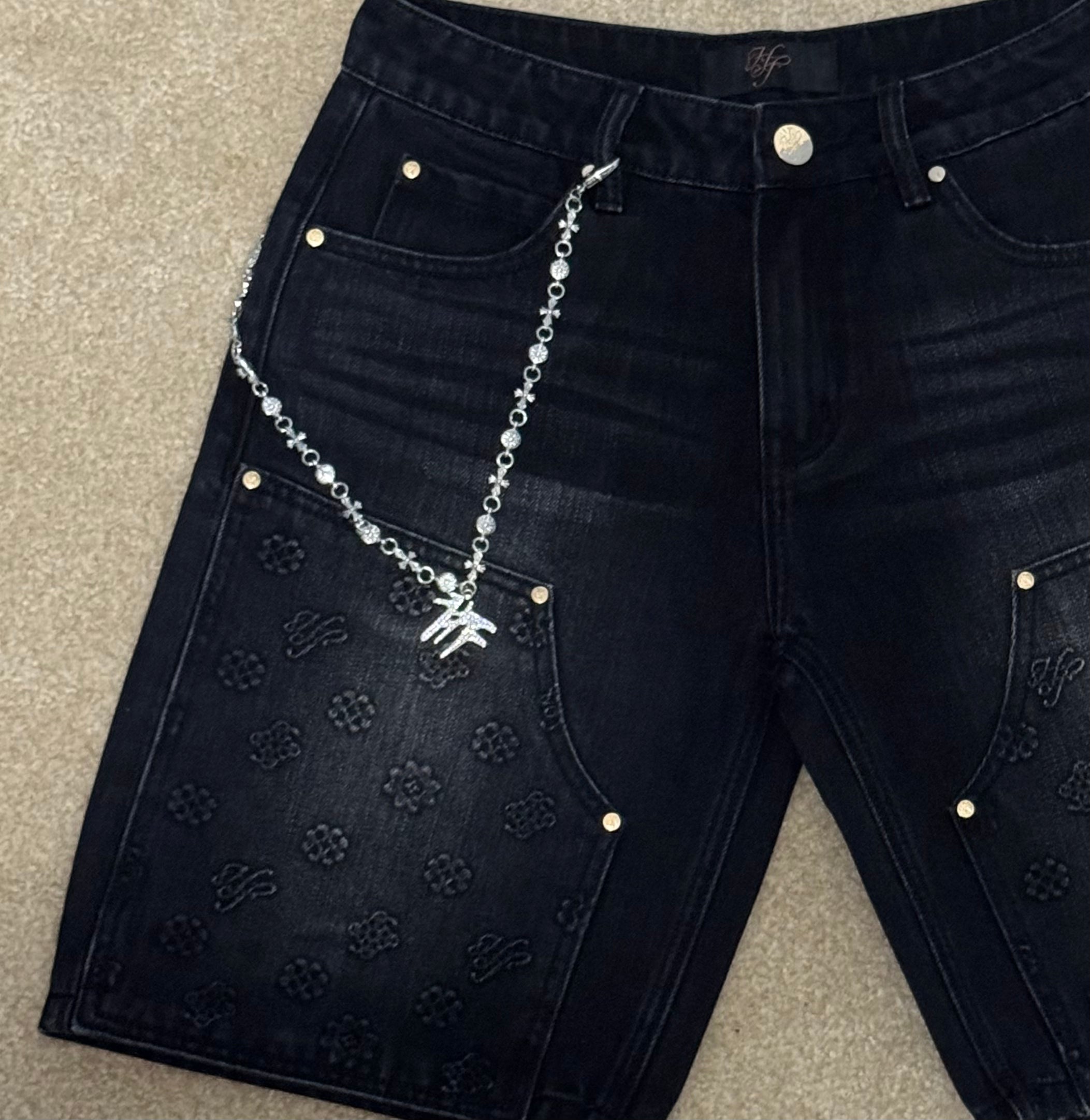 Hollywood Friends Stonewashed Black Denim Carpenter Shorts